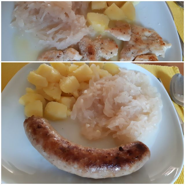 Včeraj kisla repa, krompir, pečenica, piščančji fileji.