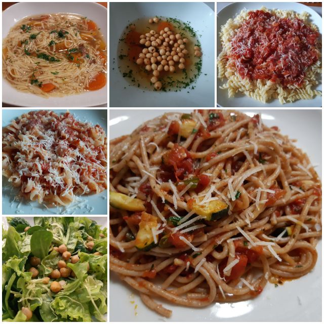 Danes goveja juha z zlatimi kroglicami in rezanci, paradižnikova omaka s svedrčki in riževimi svedrčki, zelenjavna omaka s pirinimi špageti, solata s čičeriko