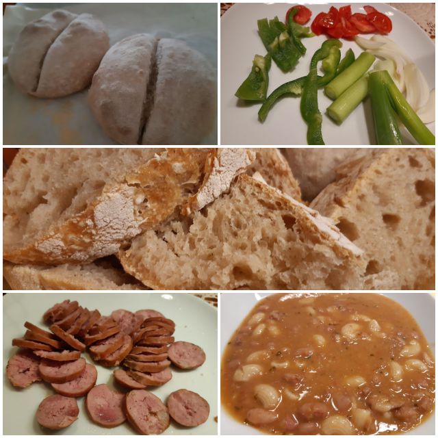 Danes pašta fižol s klobaso, zelenjava, domač drožni kruh, drožne žemlje, cviček