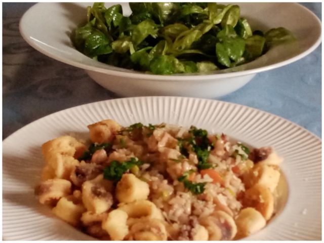 Rižota z lignji, še malo friganih ligenj; matovilec