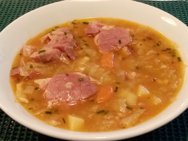Včeraj: goveja juha z rezanci, dušeni por z lososom in sirom, z žlico smetane; pečen krompir, motovilec