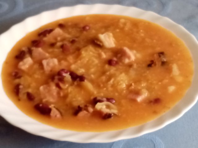 Pašta fižol in kruh.