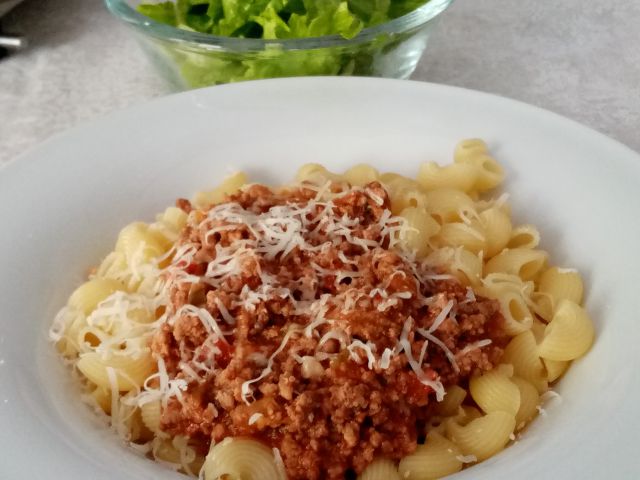 Danes brzinsko kosilo na terenu... Delala sem bologneze iz dveh kil mletega mesa. ![]()