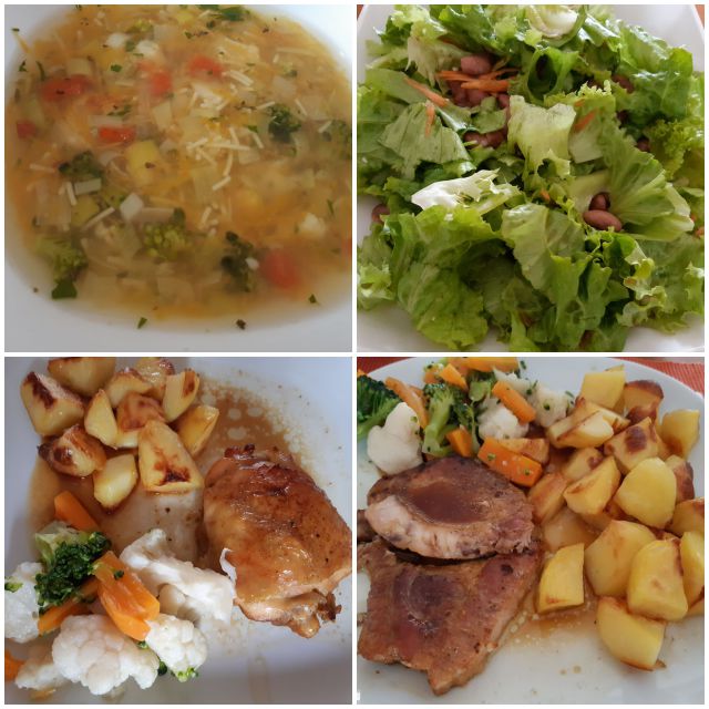 Danes zelenjavna juha, pečena kosa piščanca, svinjina, pečen krompir, zelenjava, solata
