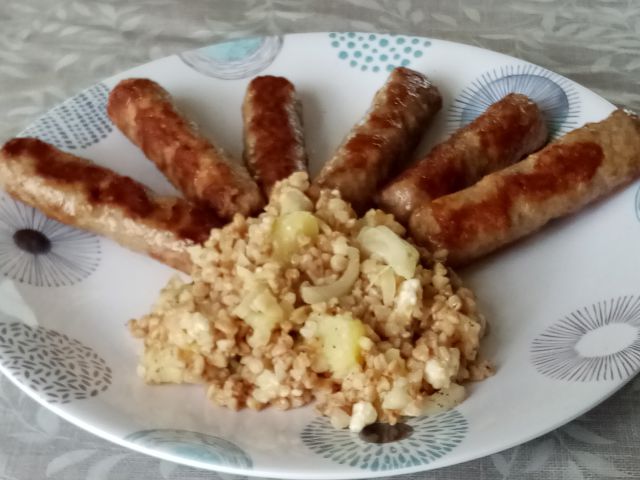 Korenčkova juhica; ajdova kaša na solato, čevapčiči