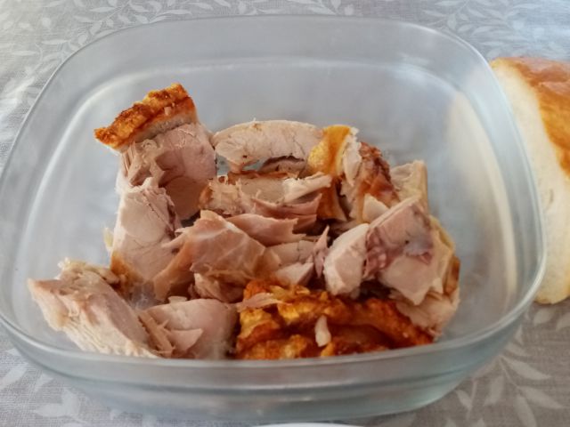 Enolončnica, dodana tudi špinača; hladno meso od včeraj