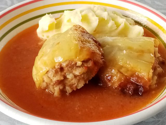 Polnjene paprike, pire krompir; sadje