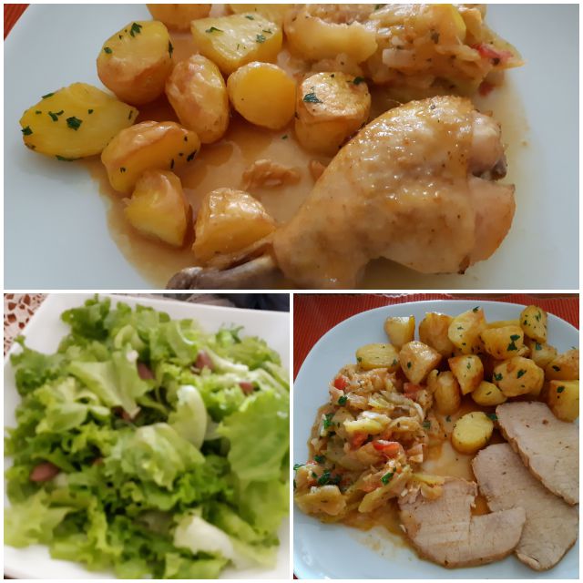 Danes taščina goveja juha z rezanci, pečen piščanec, mlinci, pražen krompir, pečene bučke, paradižnikova solata, zelena solata
