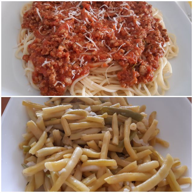 Včeraj špageti bolognese, stročji fižol v solati