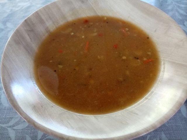Bučna juhica; ostanki od včerajšnjega kosila in večerje.