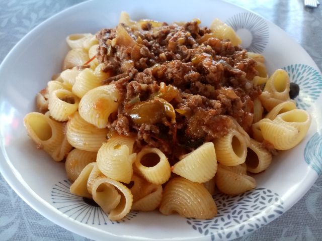 Danes: mladina bolonjska omaka, testenine, paradižnikova solata, dve bova pire krompir in bučke v omaki, eden pa govejo juho od včeraj, ostanke od včeraj in palačinko