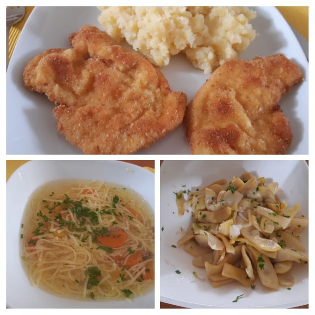 Danes goveja juha z rezanci, pražen krompir, meso po dunajsko, domač stročji fižol v solati