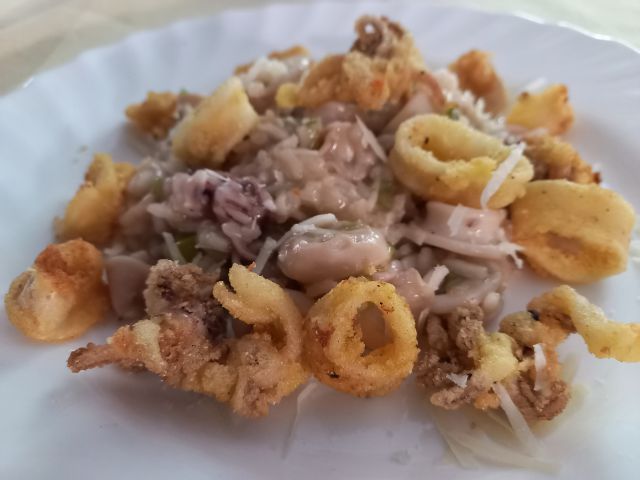 Juhica, rižota z lignji..., za povrh še mal friganih; Zelena solata