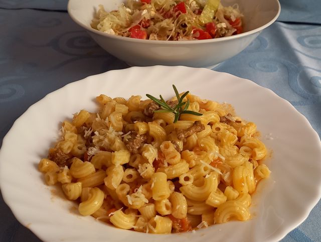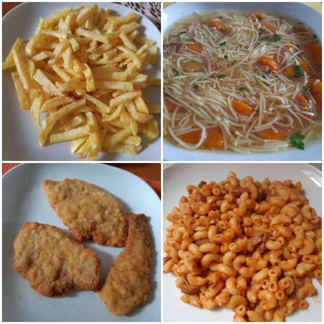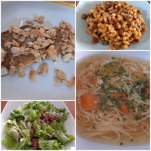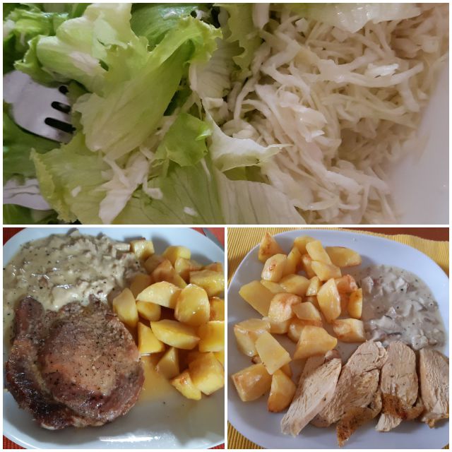V ponedeljek zame ostanki kitajske hrane, za sina meso po dunajsko, za moža preostanek makaronovega mesa in solata.