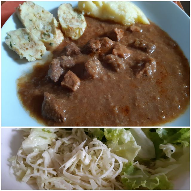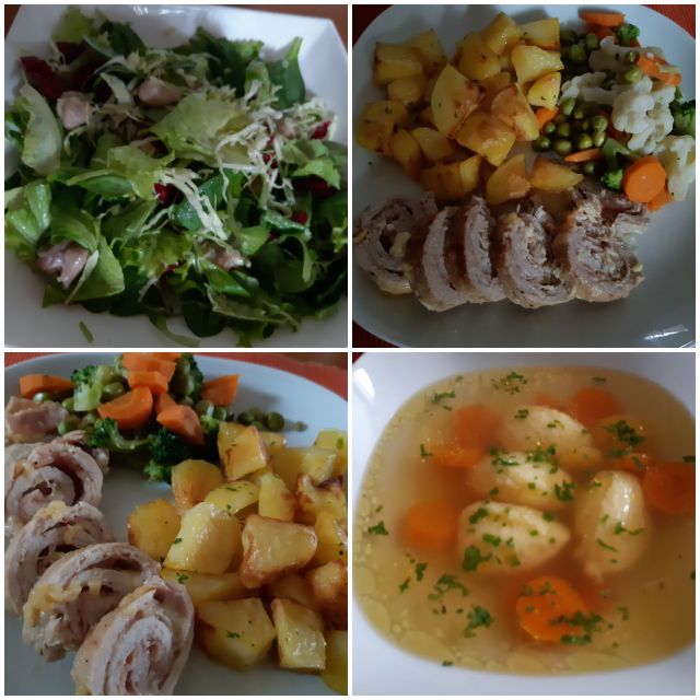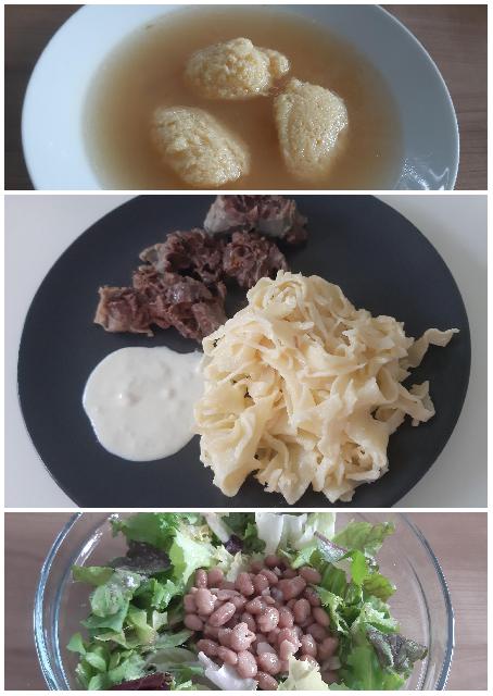 Včeraj ostanek golaža, solata, zame kokošja juha