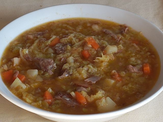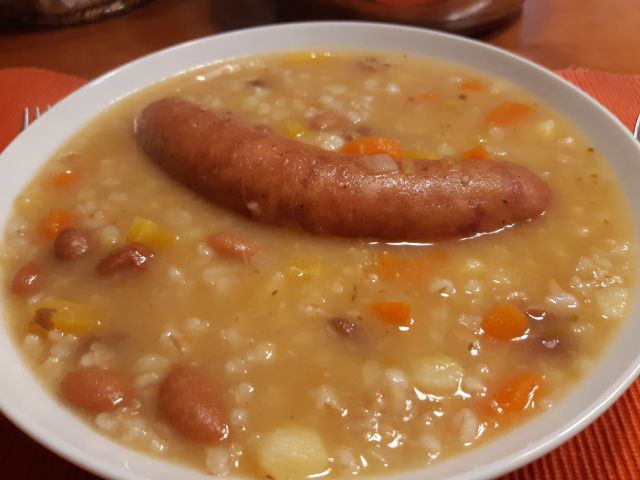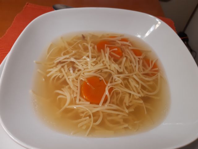Danes ričet s klobaso. Za sina goveja juha z rezanci.