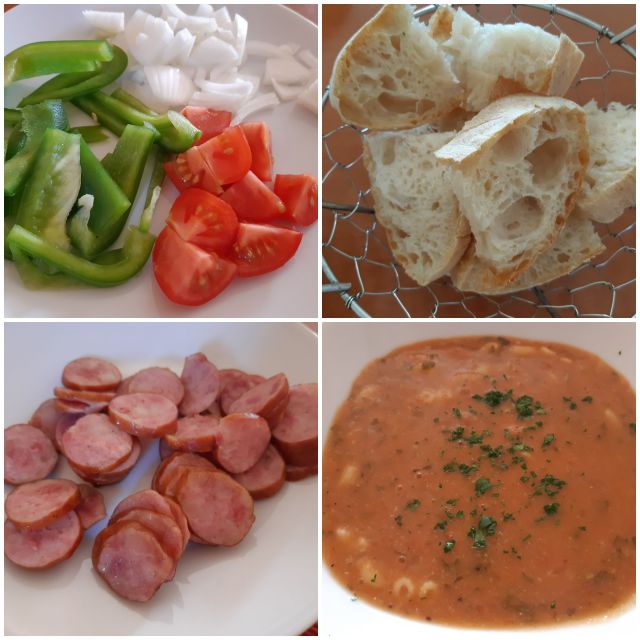 Fižolova juha, kranjska klobasa, zelenjava, drožni kruh