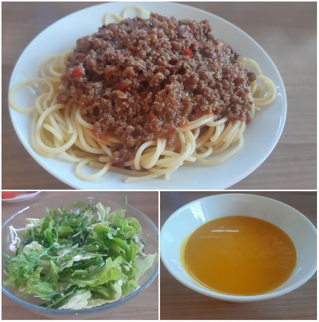 Danes juha s hokaido buče, haše, špageti, mešana solata: