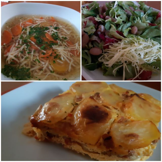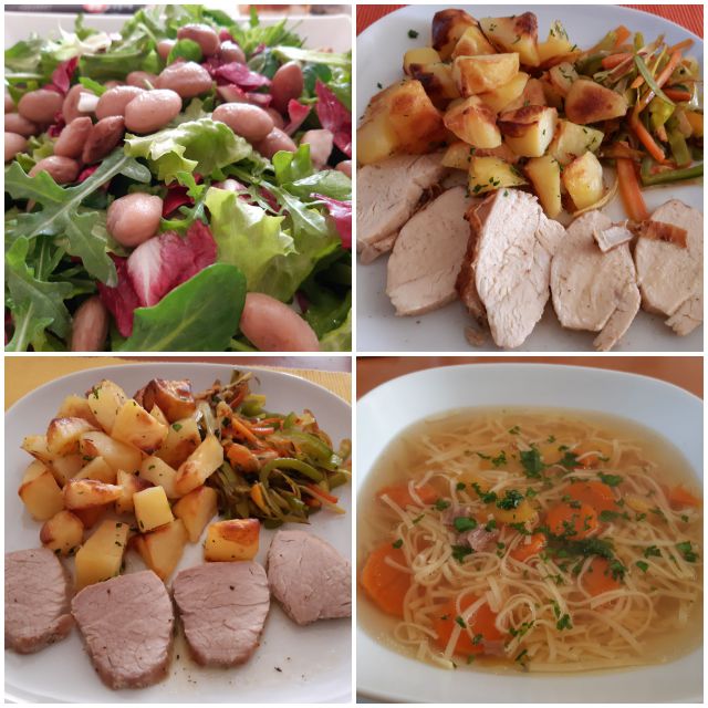 Danes goveja juha z rezanci, pečen sv.ribica, piščančja prsa, krompir, zelenjava, solata