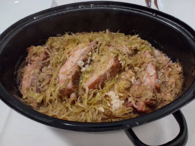 Zelenjavna juha, pečena vratovina, Kus Kus z bučkami, rdeče zelje z jogurtom v solati, narezano sadje, kava