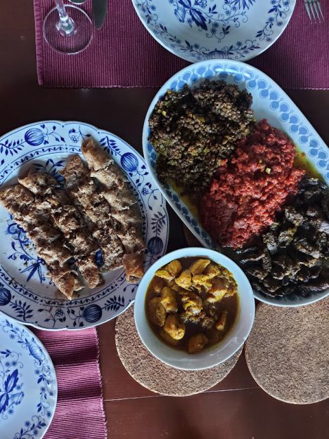 Omake so bile: piščanec s karijem, krepko začnjena junetina, pa dve iz leče - pikantna iz rdeče leče in biolj blaga iz zelene. Zanimivo.