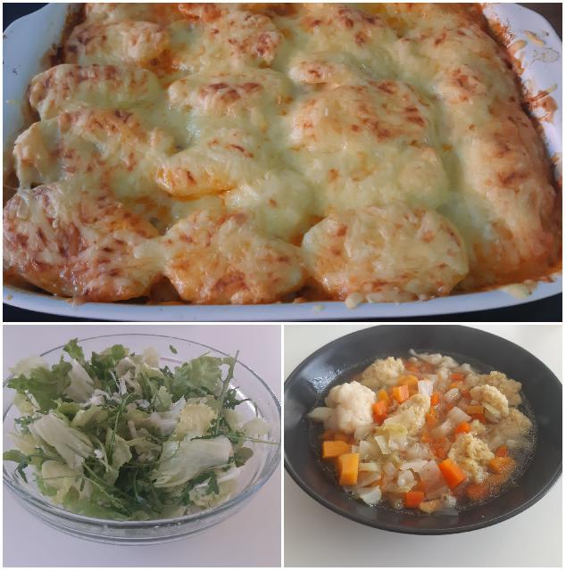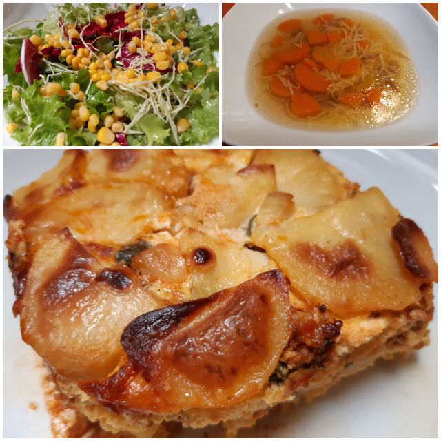 Včeraj pa zelenjavna juha, musaka in mešana solata: