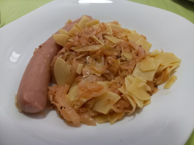 Včeraj kisla repa, krompir, pečenice, krvavica