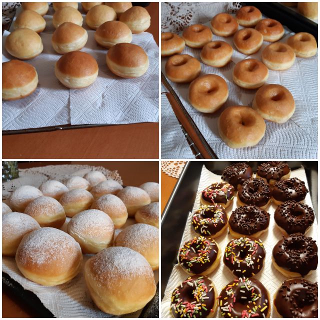 Ossi, recept je kot običajni za krofe, oblit s čokoladnim oblivom. Moji so se danes pritožili, da mora bit nadev. Torej v torek vaja 2.