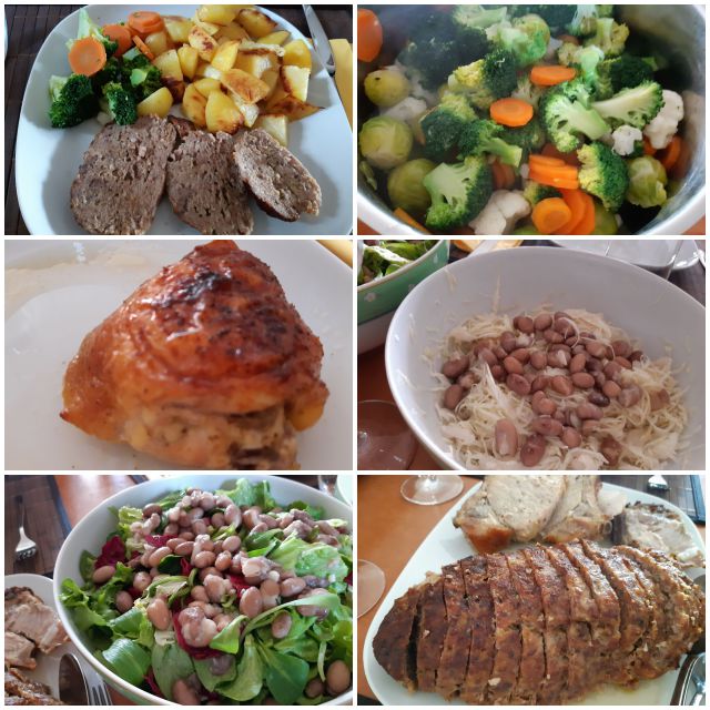 Danes na obisku hčerka z zaročencem in pripravila sem pečenko iz mletega mesa, svinjski kare, zg.del bedre, zelenjava, pečen krompir, mešana solata in seveda krofi od včeraj