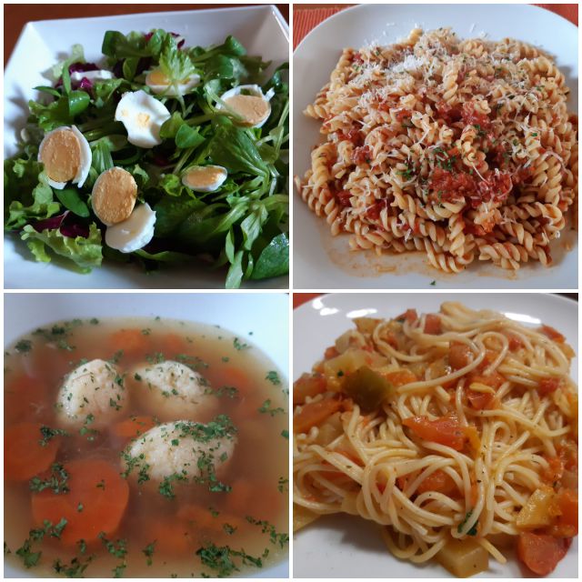 Danes ostanek goveje juhe z zdrobovimi cmoki, špageti z domačo zelenjavno omako, svedrčki z domačo paradižnikovo omako, solata