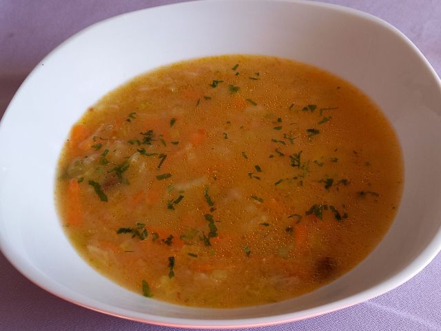 Danes: goveja juha z rezanci, polnjene paprike, krompir v kosih, kruh