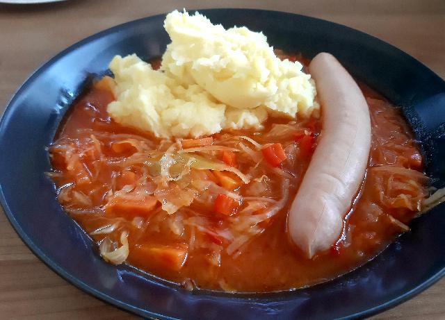 Ponedeljek in torek: piščančja obara. Danes zraven še pire