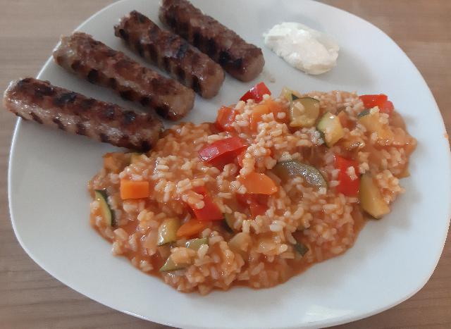 Danes bo: piščančja prsa z olivami, špageti na česnu s parmezanom, kuhana cvetača z brokolijem in grahom, radič, voda![]()