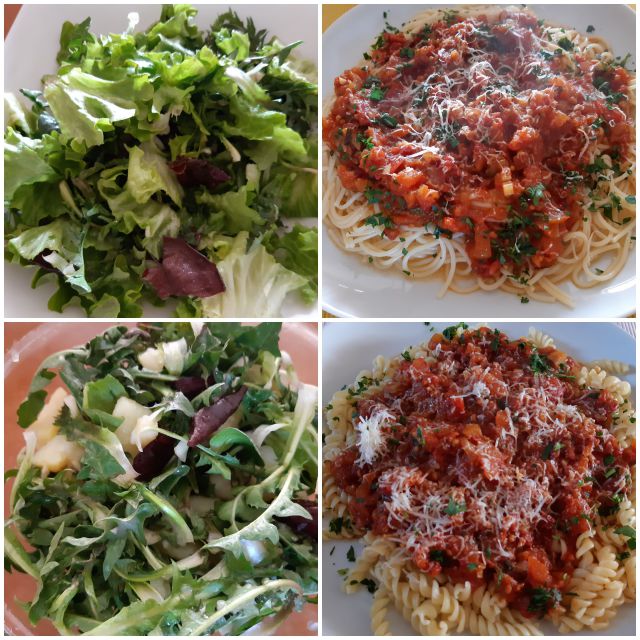 Danes zelenjavno kosilo- svedrčki in špageti z domačo paradižnikovo omako, regrat s krompirjem in solata