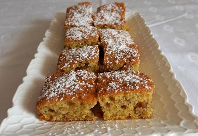 Korenčkova juhica; pečene perutničke, krompir s korenčkom; zeljnato zelena solata; orehove kocke