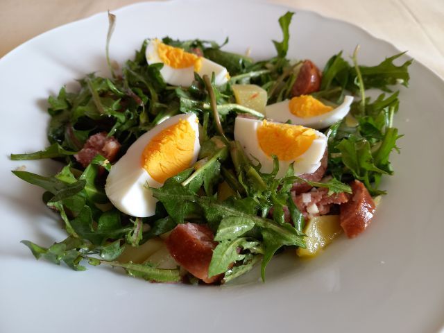 regrat, domač motovilec-od sosede, mešanica solat s fižolom