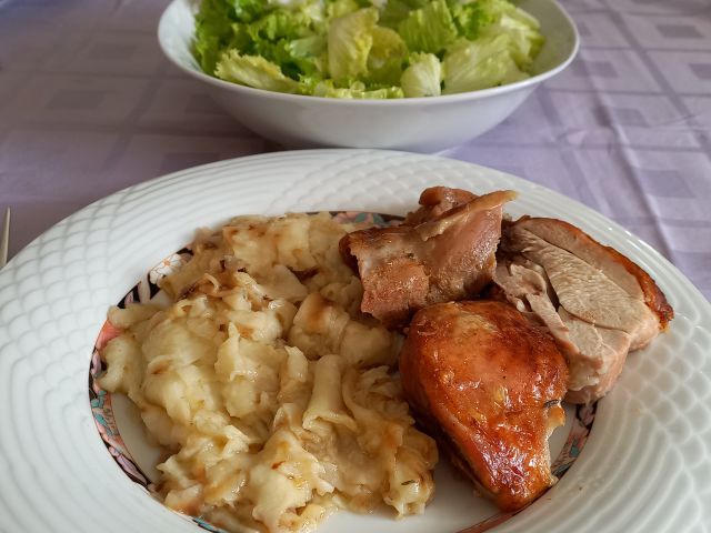Torek in sreda: pečeni makaroni s sirom in ostanki velikonočne šunke, solata.