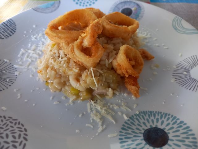 Rižoto z lignjami, zelena solata