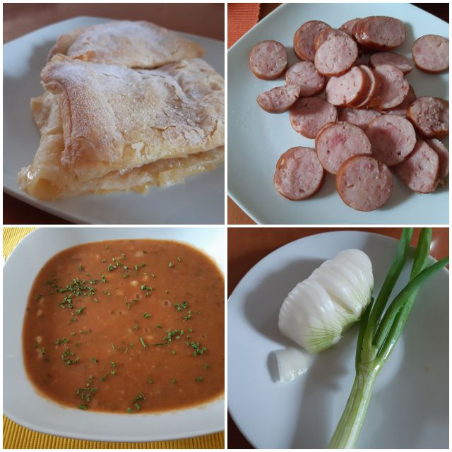 Danes fižolova juha, kranjska klobasa, kruh, jabolčni zavitek