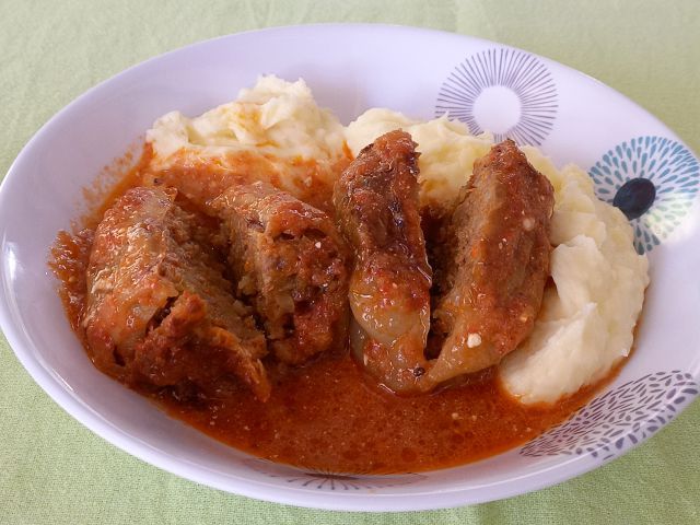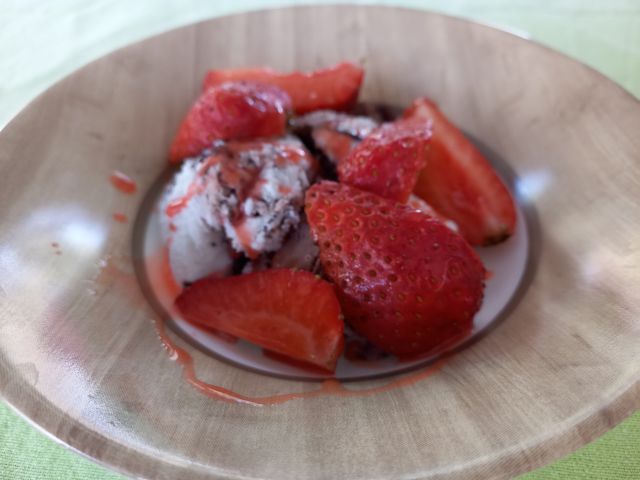 Filana paprika, pire krompir; sladoled in jagode
