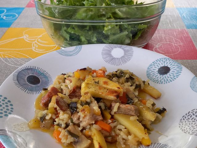 zelenjavni riž-čebula, rdeča paprika, paradižnik, ![]()