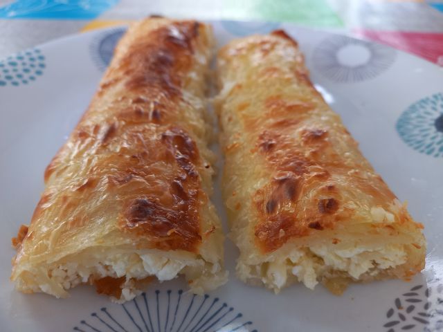 Đuveč, zelena solata; skutno-kokosov zavitek