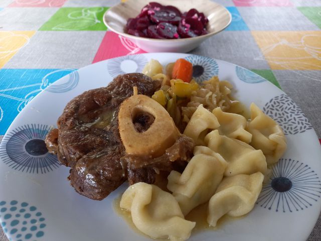 Juhica od včeraj; osso-buco z zelenjavo, zlikrofi; rdeča pesa