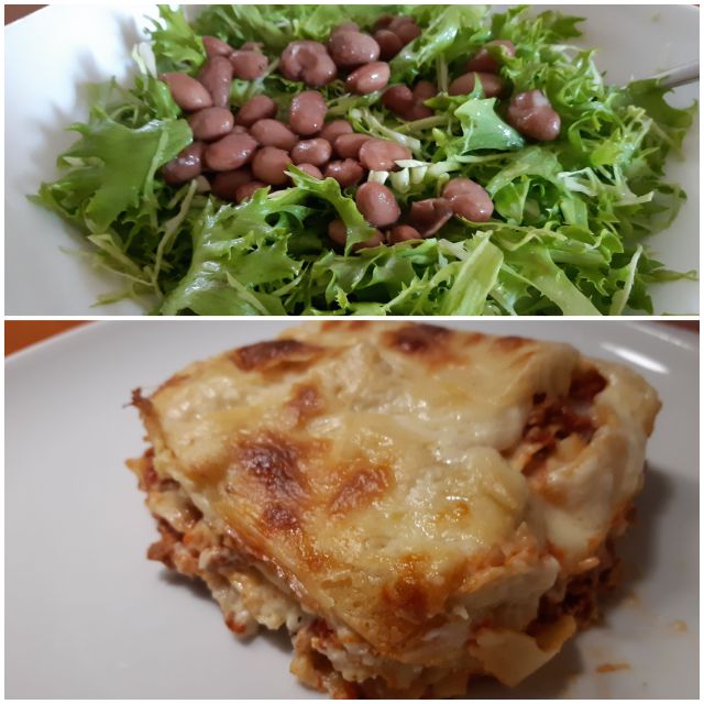 Brokolijeva juha, domači široki rezanci (naredila sama) s sparglji in panceto, solata iz vrta, domači sladoled(zmrznjeni gozdni sadeži,vanilija,sladkor, sladka smetana-multipraktik),kava