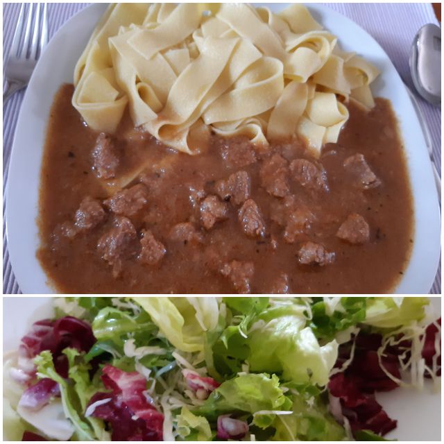 V ponedeljek telečji golaž, široki rezanci, solata