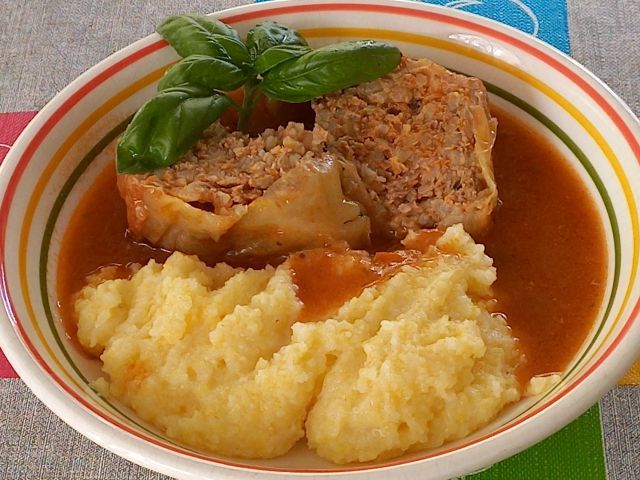Filane paprike (iz zaloge), polenta/grez s feto
