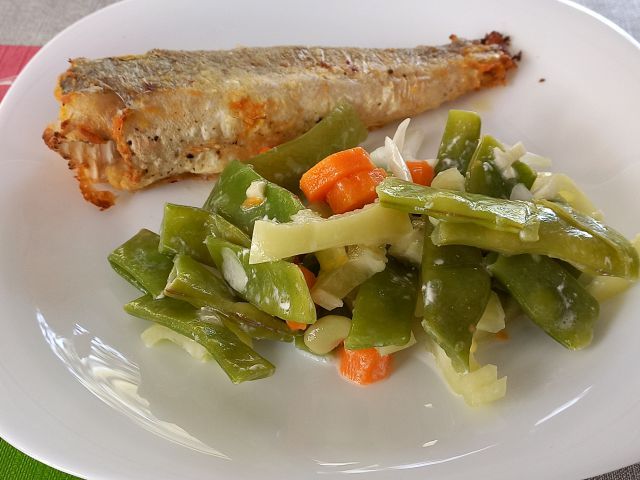 Sobota: zelenjavna juha, goveja juha s fritati, pečen krompir s papriko, goveji in puranji čevapčiči, pečene bučke, paradižnikova in zelena solata, češnjeva pita.