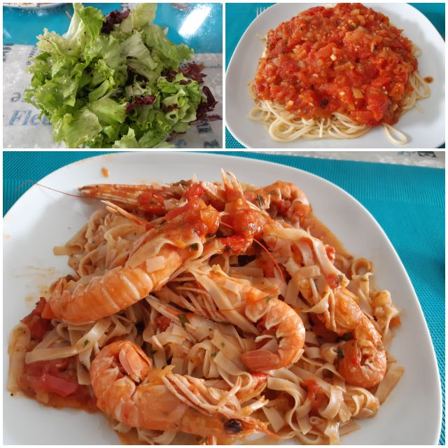 v nedeljo smo prispeli in smo šli na pizze, jaz rižoto s škampi in solato. Čeprav smo v isti restavraciji jedli velikokrat je bilo tokrat slabše, saj se je zamenjal lastnik. Cene zelo visoke, če primerjam leto 2020 ...