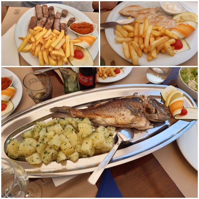 Danes smo se kopali na luštni plaži v bližini kampa Lopari. Brez gužve. Za kosilo smo šli v restavracijo Joker v Sv. Jakov. Otroka razočarana, da niso imeli pišč.dunajca ( na otoku je to sedaj res problem, ker ga v večini restavracij ni) izbrala sta čevape, piščančji file na žaru, pomfri, midva pagarja z žara s krompirjem, solati. Bilo je odlično, cena zelo normalna. 25% manj kot v mestu. Slikati sem še uspela
