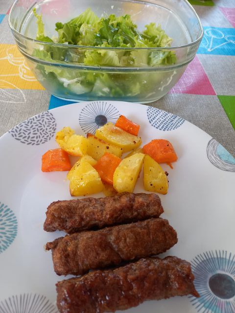 Pečen krompir, čevapčiči, zelena solata